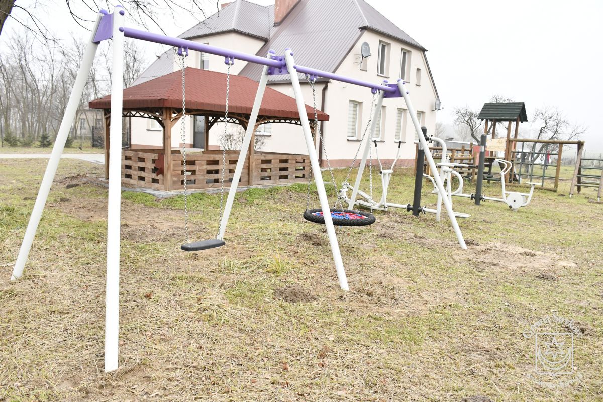 Projekt obejmował zakup wyposażenia działki sołeckiej  w postaci zakupu i montażu obiektu małej architektiru - drewnianej  hustawki podwójnej z bocianim gniazdem, oraz zakup grilla z rusztem.