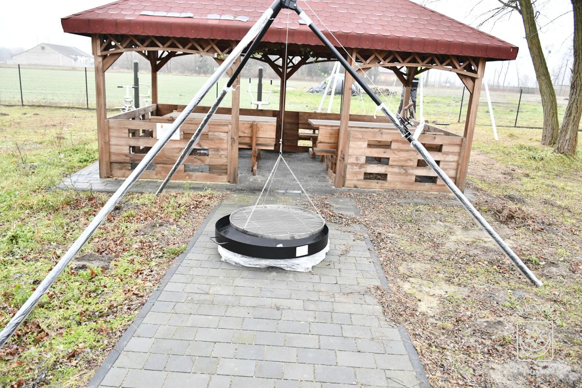 „Zakup i montaż altany biesiadnej wraz z wyposażeniem oraz grilla wolnostojącego na terenie placu przy świetlicy wiejskiej wraz z utwardzeniem terenu wokół i montażem 4 lamp solarnych"
