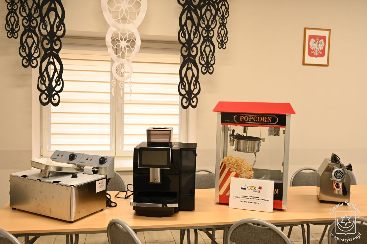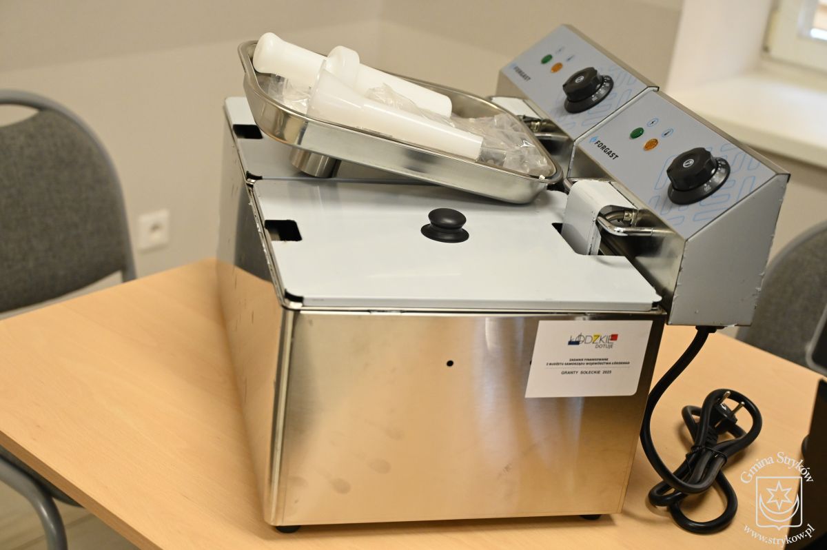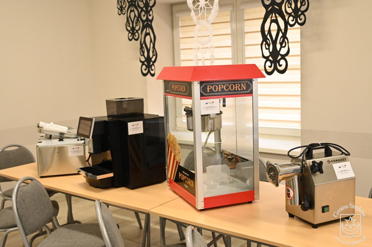 Projekt obejmował zakup wyposażenia świetlicy wiejskiej w niezbędny sprzęt kuchenny, taki jak frytownica, maszyna do popcornu, maszynka do mielenia mięsa, ekspres do kawy oraz szafę magazynową.