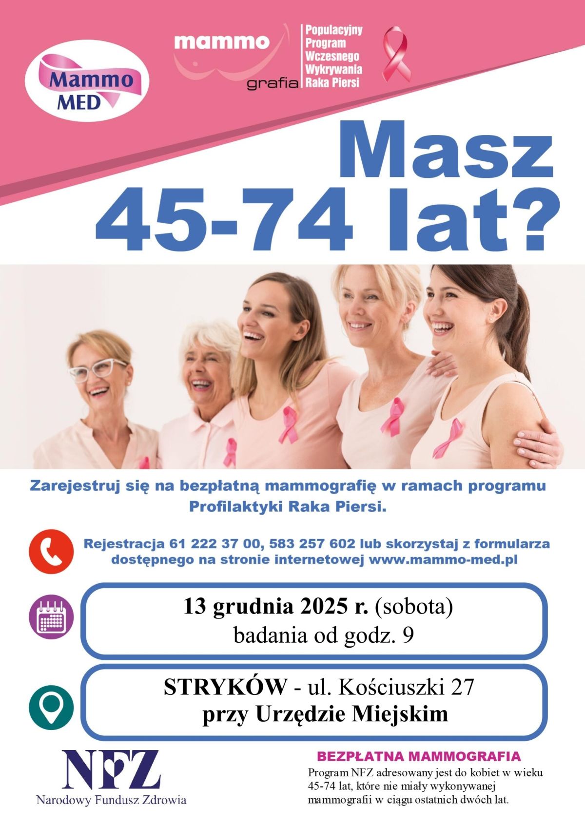 • Bezpłatne badanie mammograficzne 19.09.2025