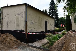 Trwa zabezpieczanie fundamentów. Do pierwotnie zaplanowanego zakresu robót tj. ocieplenia ścian i stropodachów, prac towarzyszących, wymiany wewnętrznego i zewnętrznego oświetlenia na ledowe, Burmistrz Strykowa Witold Kosmowski, po konsultacjach z dyrekcją szkoły, polecił dodać także inne, niezbędne prace na terenie obiektu. Należą do nich m.in.: naprawa istniejącego pokrycia z papy i wykonanie dodatkowego pokrycia na segmencie sali gimnastycznej z zapleczem szatniowym, wymiana 6 okien w sali gimnastycznej, wymiana 17 okien na trzeciej kondygnacji segmentu dydaktycznego od strony południowo-zachodniej, wymiana 7 okien w poziomie drugim kondygnacji części szatniowej od strony południowo-zachodniej wraz z wymaganymi naprawami wnęk okiennych wewnętrznych oraz ich malowaniem, wymiana 2 szt. drzwi wejścia głównego do szkoły.