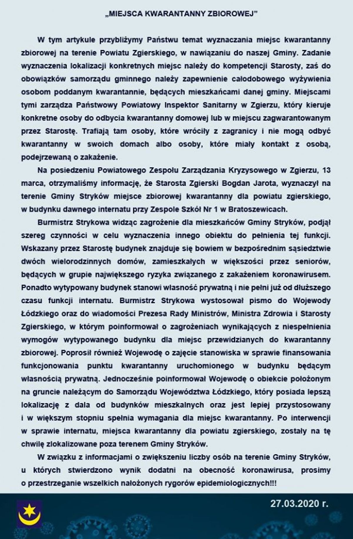 Komunikaty jednostek organizacyjnych Gminy Stryków