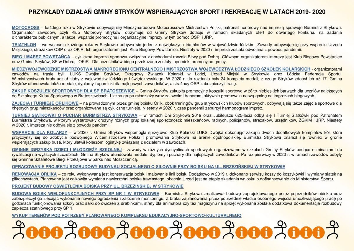 • Przykłady działań Gminy Stryków wspierających sport i rekreację w latach 2019-2020