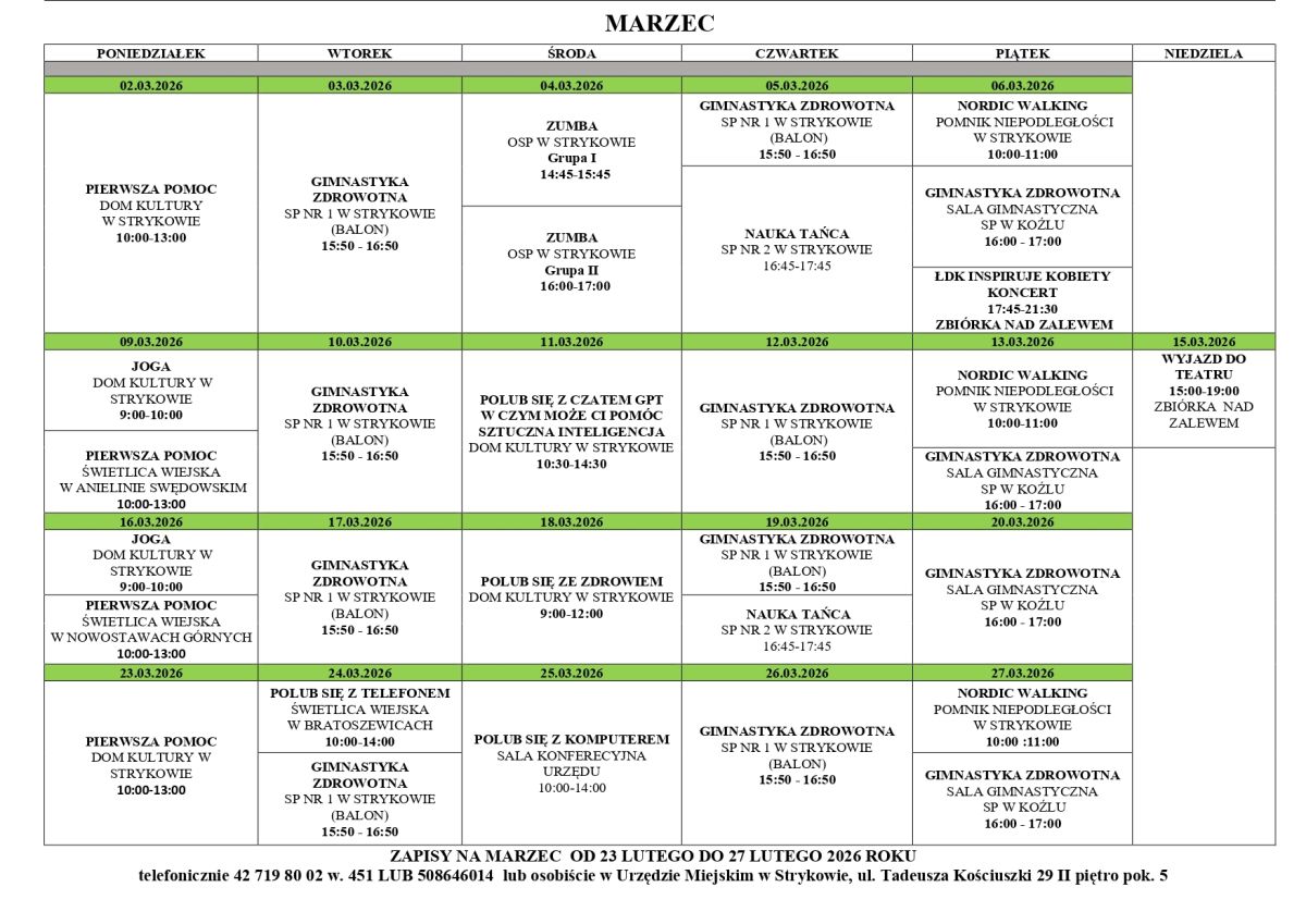 Lista poddziałów dla strony HARMONOGRAM ZAJĘĆ
