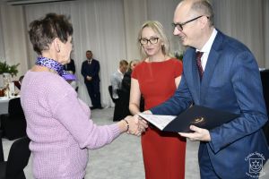 Miłą i wzruszającą niespodzianką było wręczenie kwiatów oraz pamiątkowej tabliczki o treści: „Podziękowanie dla Pana Witolda Kosmowskiego Burmistrza Miasta i Gminy Stryków – Rektora SAS oraz całego zespołu Wykładowców Trenerów i Opiekunów Strykowskiej Akademii Seniora za wspaniałe zajęcia rozwijające ciało, umysł i ducha - składają wdzięczni i radośni Studenci Seniorzy SAS”.