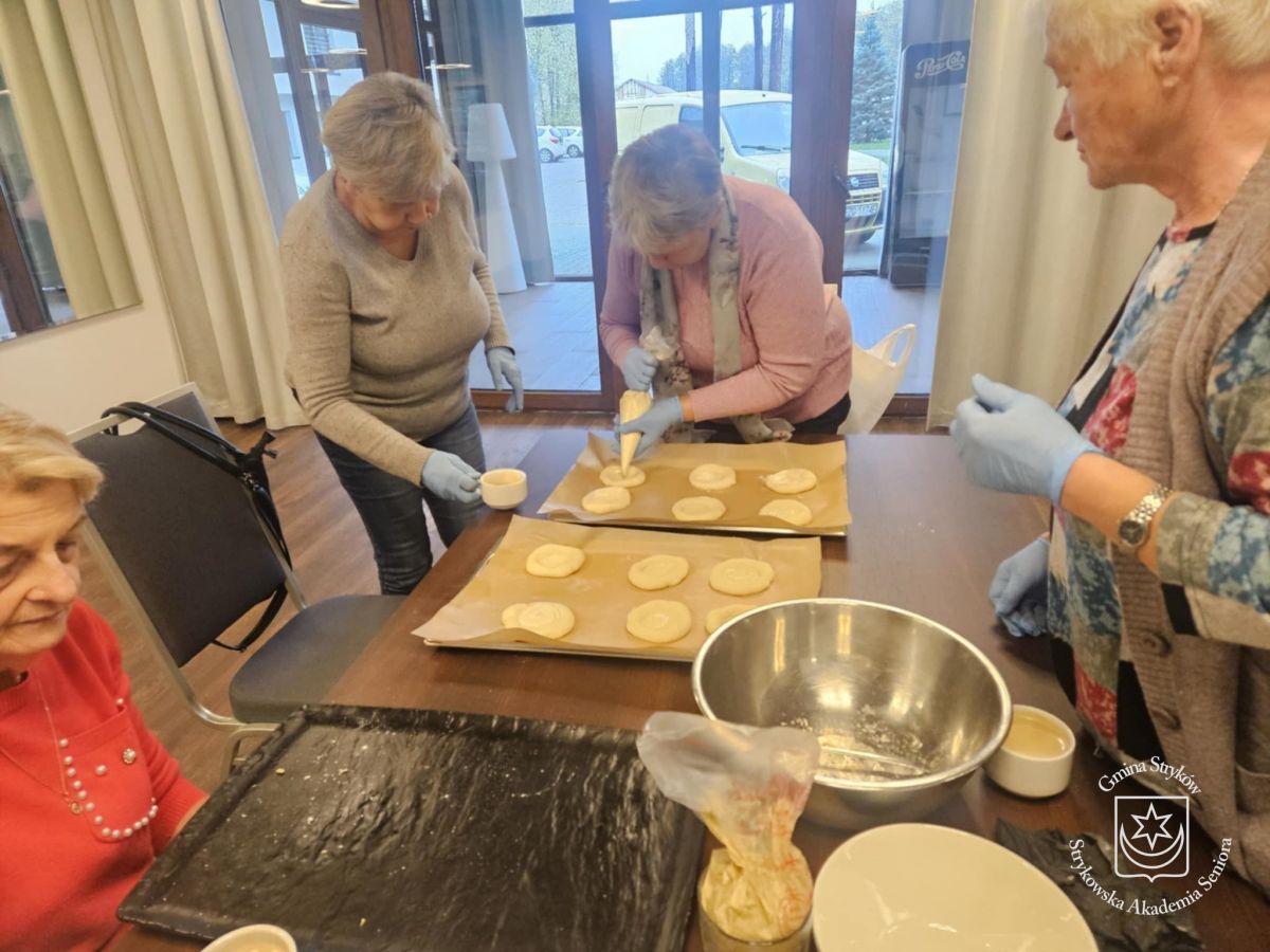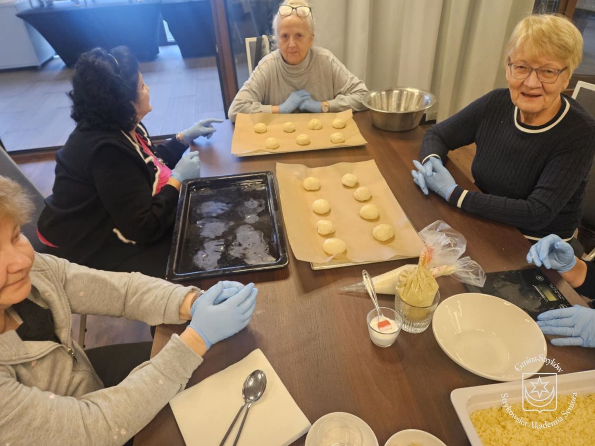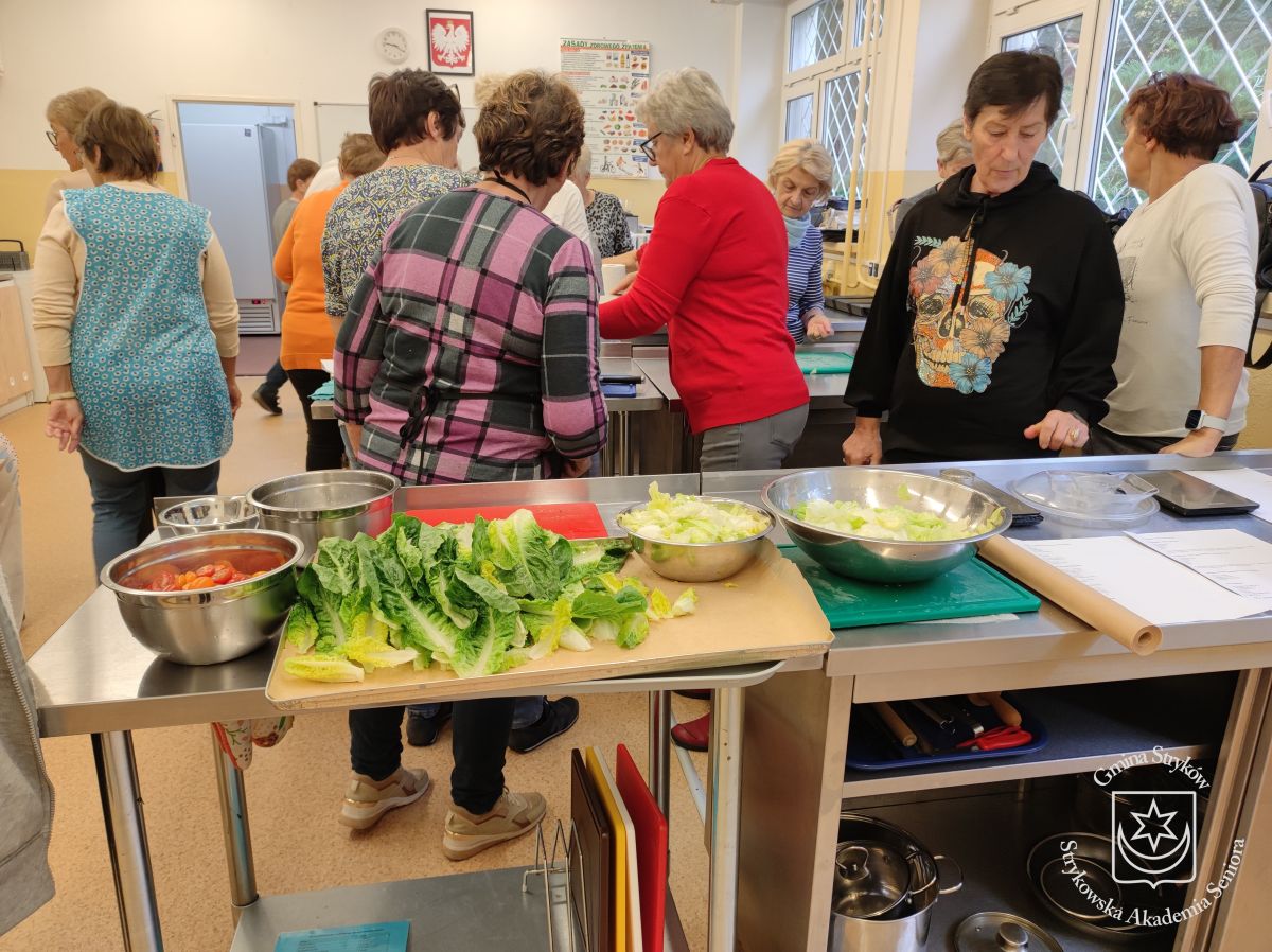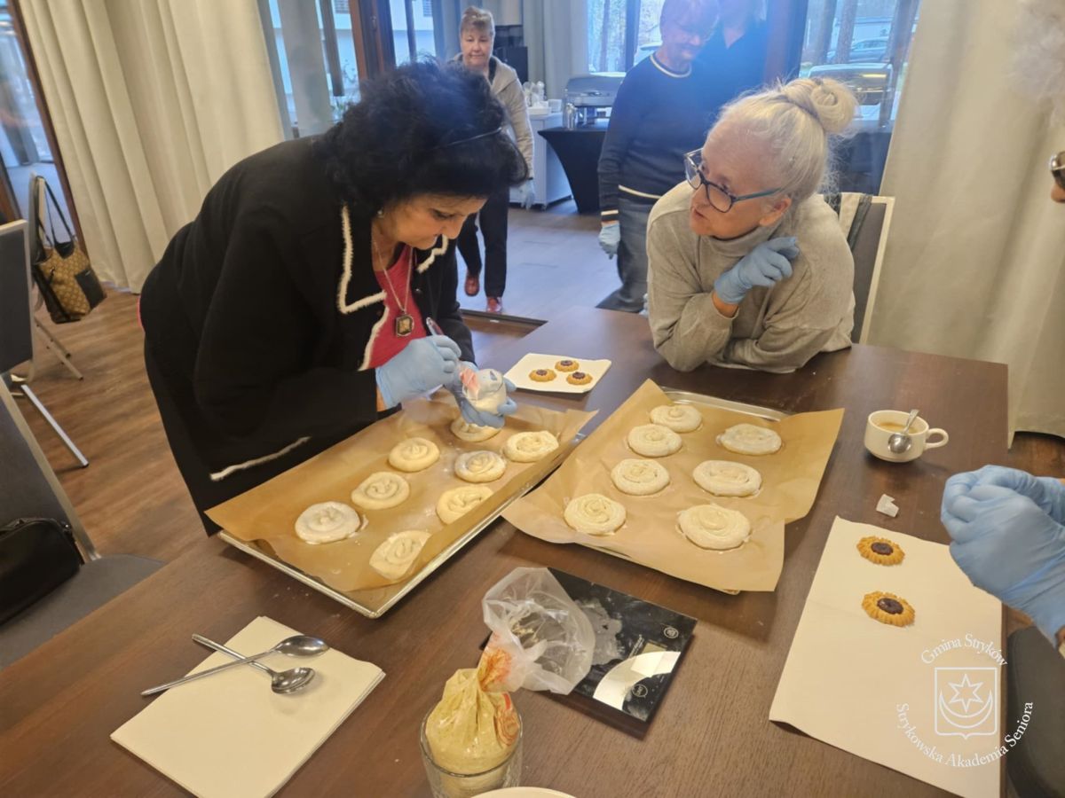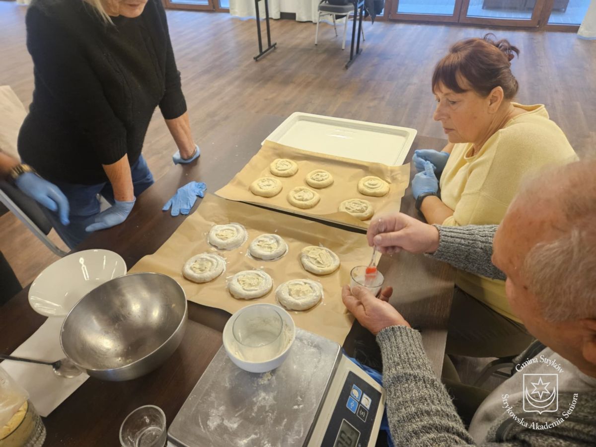 W środę, 1 października 2025 r., odbyły się wyjątkowe zajęcia kulinarne zorganizowane dla Strykowskiej Akademii Seniora. Warsztaty miały miejsce w profesjonalnej pracowni kulinarnej Zespołu Szkół nr 1 w Bratoszewicach, która została udostępniona na potrzeby zajęć, dzięki uprzejmości dyrekcji szkoły. Zajęcia poprowadził pan Artur Nijakowski, mistrz cukiernictwa, który z ogromnym zaangażowaniem dzielił się swoją wiedzą i pasją do gotowania. Pan Artur to doświadczony mistrz cukiernictwa, znany z licznych pokazów i warsztatów kulinarnych. Jego profesjonalizm, otwartość oraz umiejętność pracy z różnymi grupami wiekowymi sprawiły, że zajęcia przebiegły w wyjątkowo serdecznej i inspirującej atmosferze. Jego wiedza oraz ciekawe podejście do gotowania zachwyciły uczestników i dodały zajęciom wyjątkowego charakteru. Pod jego przewodnictwem uczestnicy przygotowali między innymi: