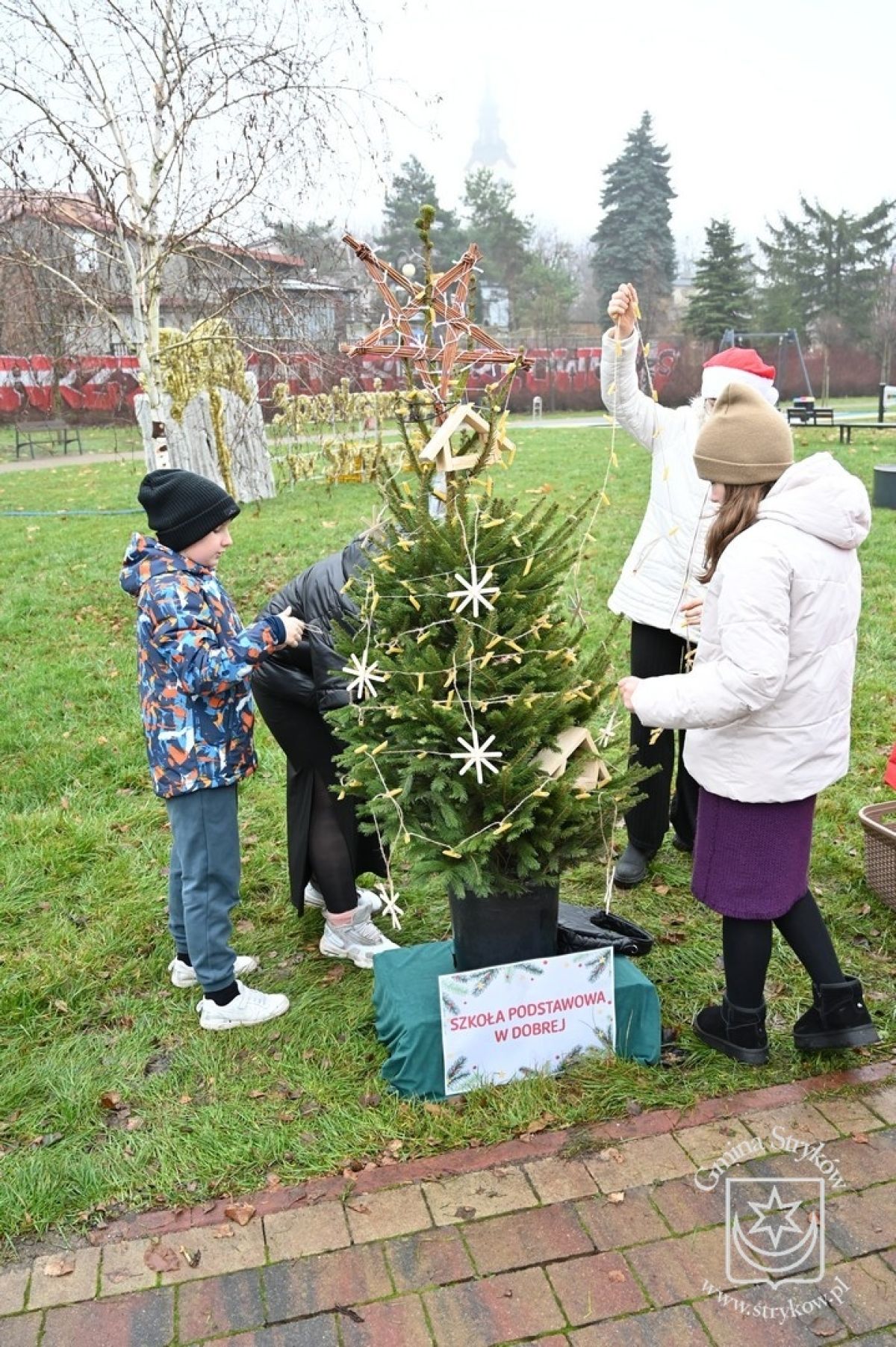 Dziś Park nad Moszczenicą wypełnił się świąteczną atmosferą. Uczniowie naszych szkół podstawowych ozdabiali choinki ustawione wzdłuż głównej parkowej alei. Wydarzenie odbyło się w ramach konkursu zorganizowanego przez Urząd Miejski w Strykowie pn. „Gmina Stryków w Świątecznym Przebraniu”. Dzieci wcześniej przygotowały ozdoby na lekcjach, a dziś pod okiem opiekunów dekorowały drzewka. Radości i kreatywności nie brakowało!