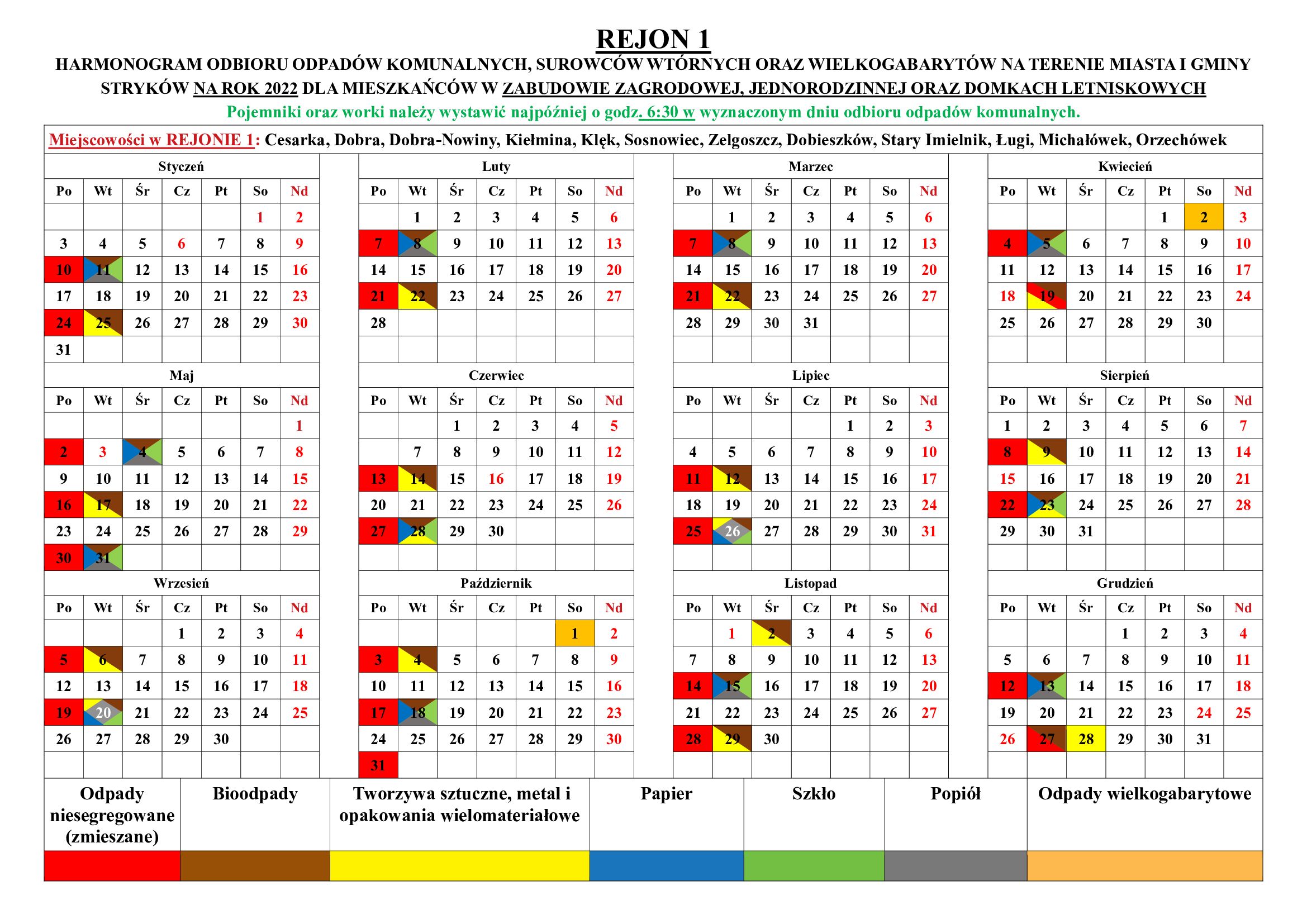 2022.12.14 - Komunikat - odbiór odpadów Rejon I